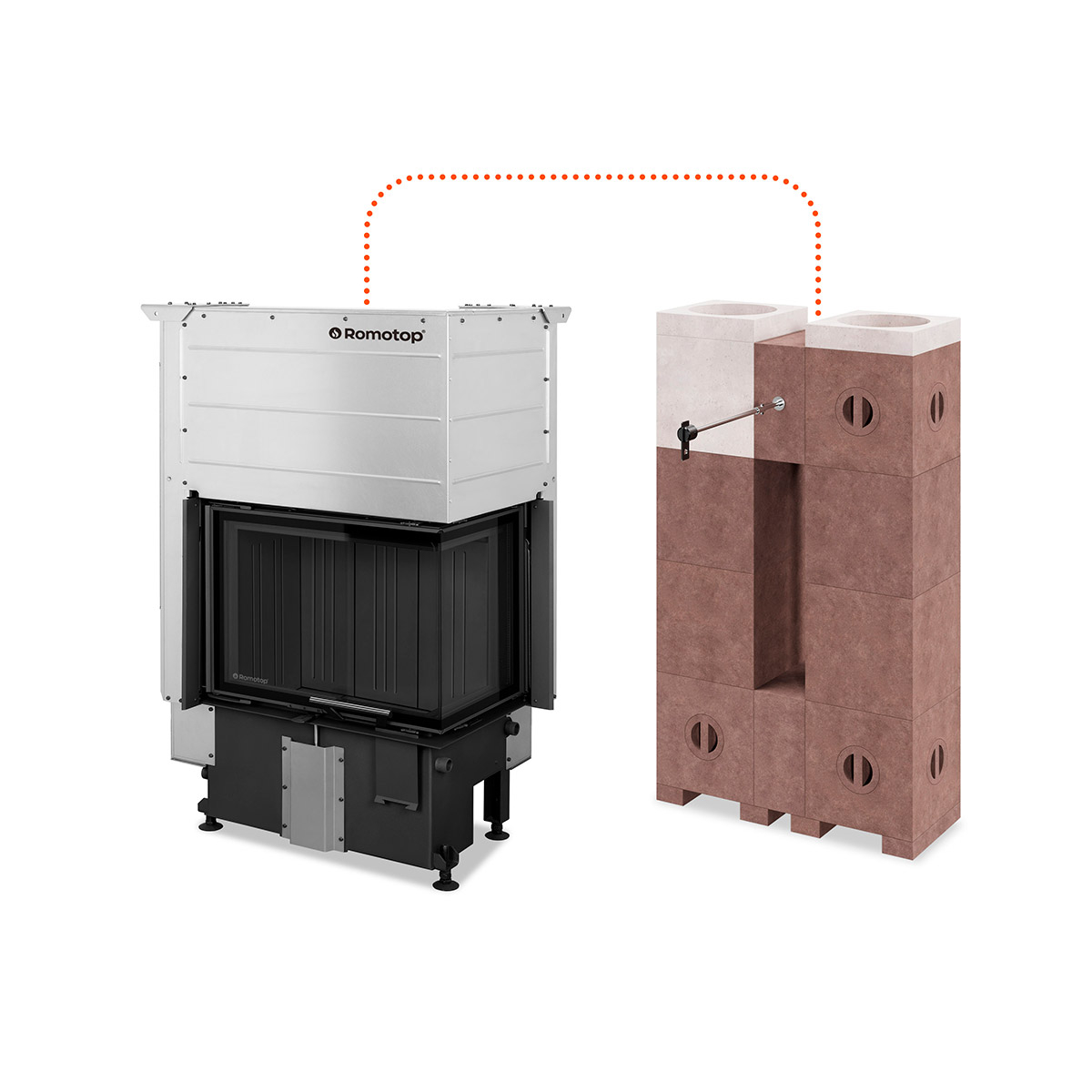 Read moreThe AMS accumulation blocks are made from a material with outstanding thermal conductivity and a high bulk density of 2,750 kg/m³. These properties allow the blocks to absorb heat from combustion gases quickly and release it gradually as radiant warmth long after the fire has gone out. The accumulation blocks are installed between the fireplace insert and the chimney, with the option of placement on either the right or left side of the firebox. The complete AMS set weighs approximately 220 kg, the flue path measures up to 2.5 meters, and the recommended minimum thermal exchange surface of the accumulation cladding is 5 m². The AMS system significantly increases heat accumulation efficiency and user comfort, while preserving the visual appeal of the heating installation.