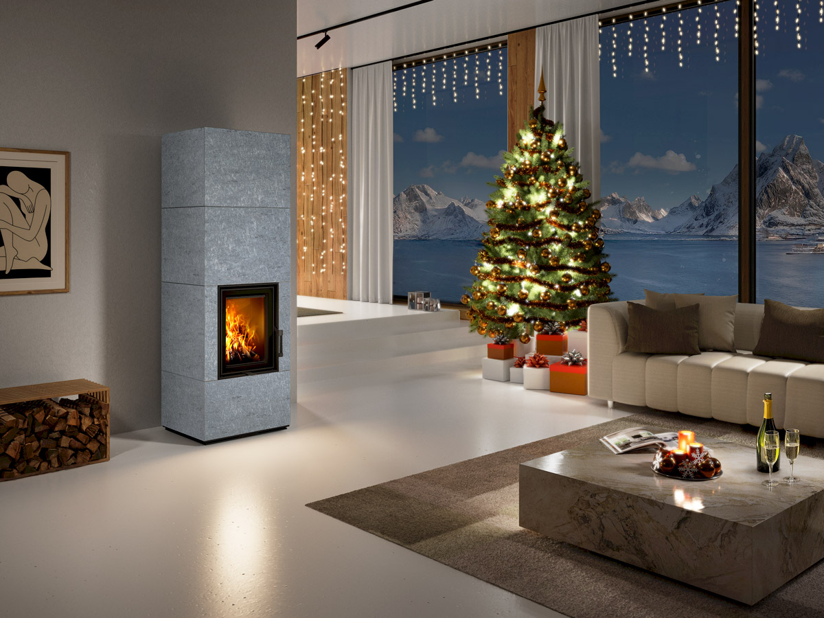 Heat-retaining fireplace NORDAC  - design and warmth with a long life. With a weight of around 600 kg, it combines modern technology with pleasant thermal comfort. It can store energy from wood and gradually transfer it to the room with a balanced output for up to 12 hours.